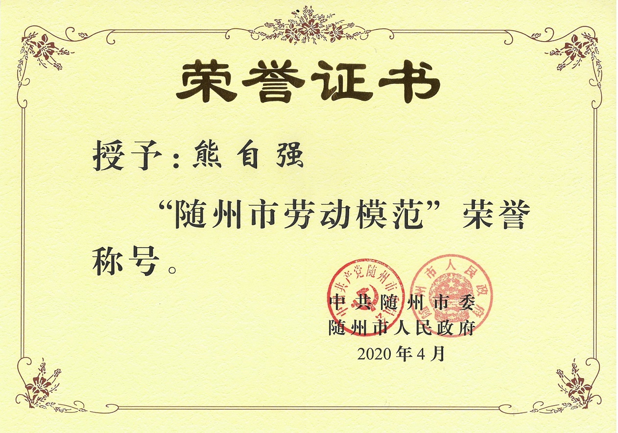 2020年4月23日,隨州市勞動模范和先進(jìn)工作者推薦工作領(lǐng)導(dǎo)小組公示了2020年隨州市勞動模范和先進(jìn)工作者表彰對象,我公司總經(jīng)理入選在列。
